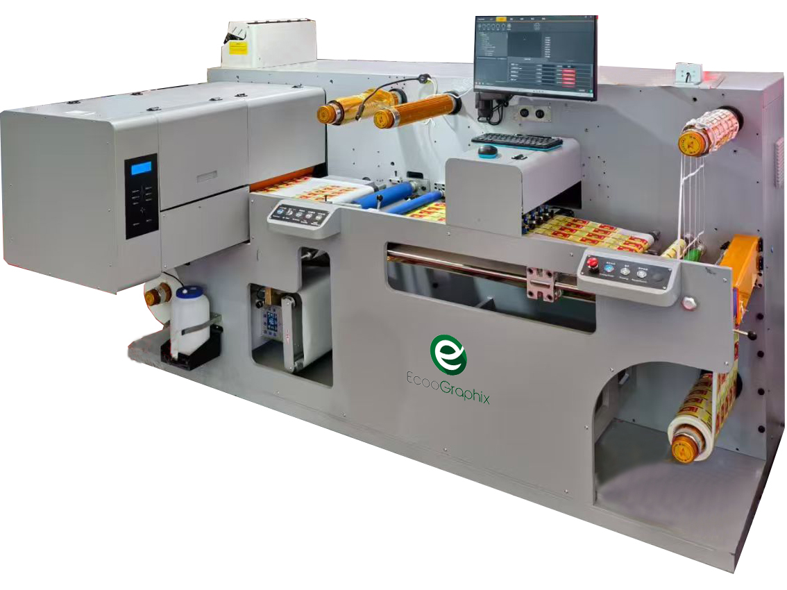 एक प्रवेश स्तर की गति यूवी स्याही जेट लेबल मुद्रण मशीन सभी में एक सहित सीएमवाईके, सफेद, varnishing, हिट पन्नी स्टैम्पिंग, डाई काटने, laminating और sliting मशीन। यह एक बहुत ही अभिनव है,कम निवेश, पूर्ण-विशेषताओं वाला डिजिटल लेबल प्रिंटर।